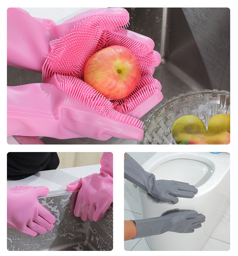 নতুন Magic Silicone Dishwashing Gloves, যা আপনার বাসন মাজা, সিঙ্ক পরিষ্কার এবং গৃহস্থালির অন্যান্য কাজে কার্যকর। এটি নন-স্লিপ, পুনঃব্যবহারযোগ্য এবং আরামদায়ক, যা আপনার হাতকে সুরক্ষিত রাখে।