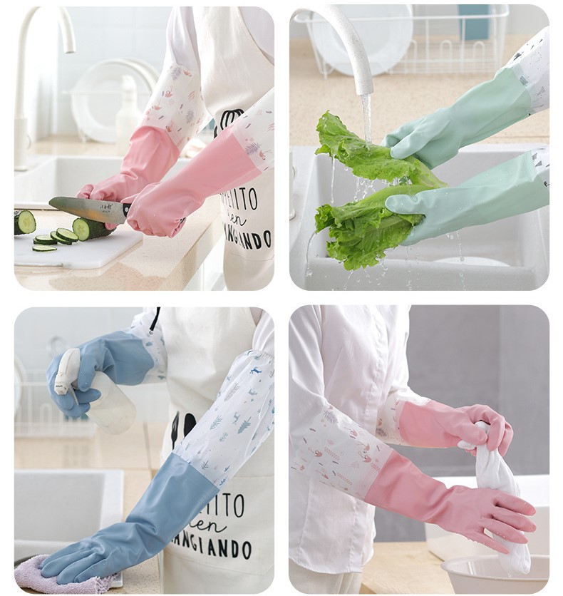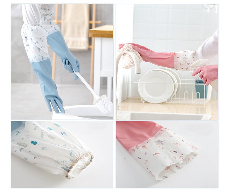 1 Pair- Household Non-Slip Long Reusable Silicone Kitchen & Housekeeping Gloves