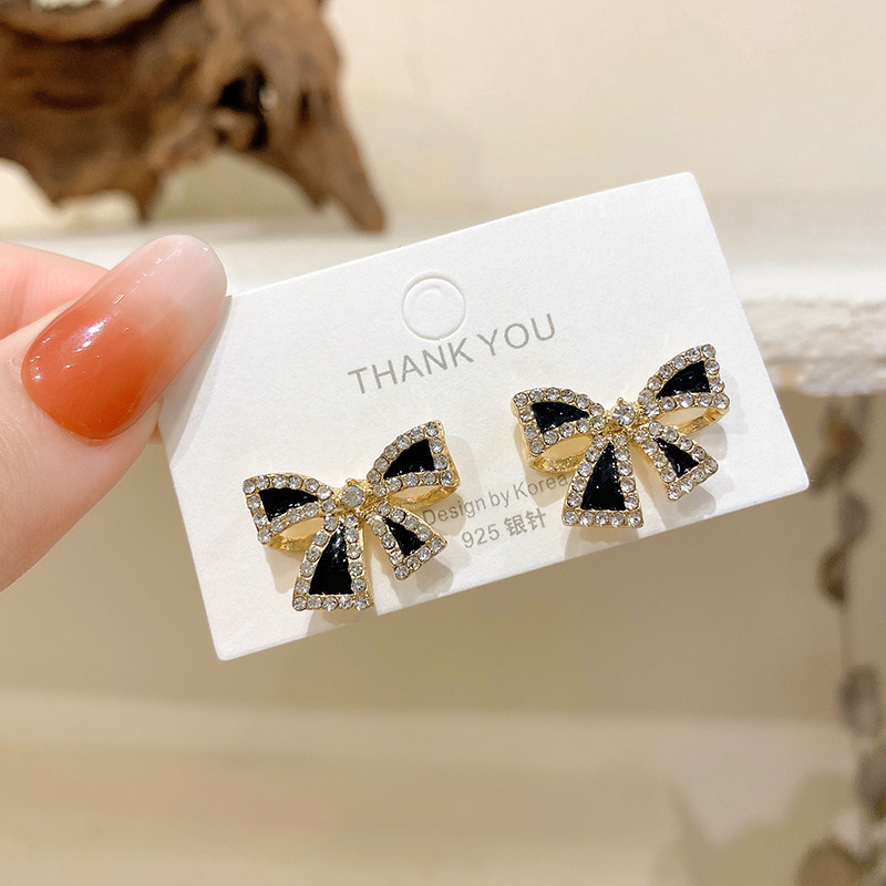 Black Bowknot Stud Earrings – Summer Diamond Fashion Earrings for Women